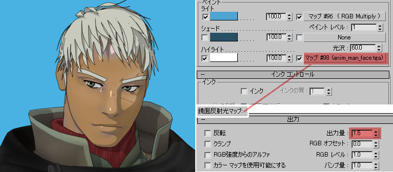 INK’N PAINTや直接フォールオフマップを拡散反射光に適用した場合